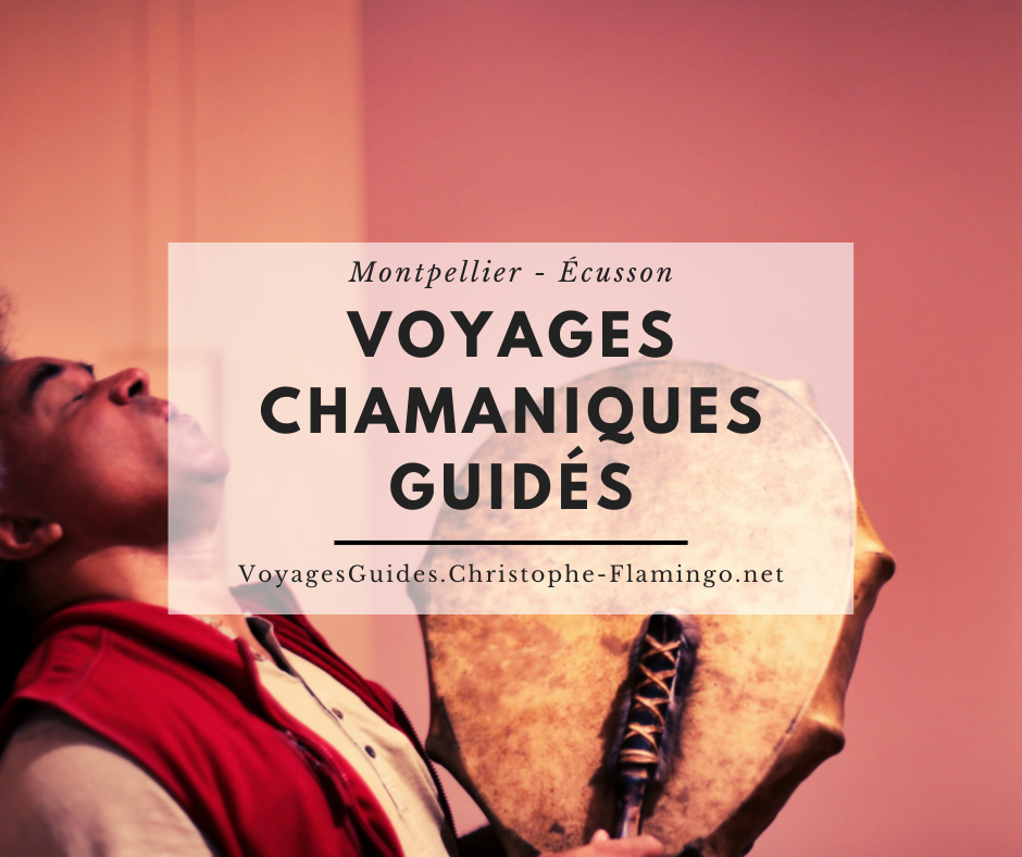 Voyages chamaniques au tambour, avec la voix chantée et parlée de Christophe Flamingo.